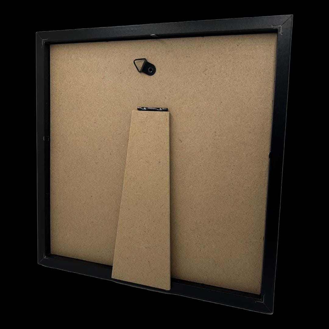 The Print supplied with a Black Wooden Wall and/or Desk mount frame.